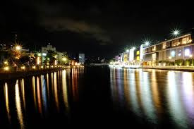 兵庫運河わきの散歩道。夜はイルミネーションが点灯しておりきれいですよ。