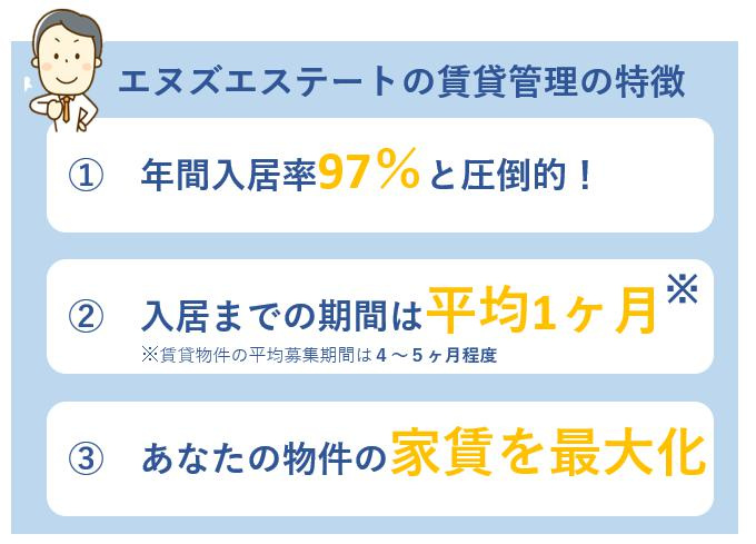 「年間入居率97%・平均入居1ヶ月の客付け」賃貸管理ならエヌズエステートに依頼すべき理由とは